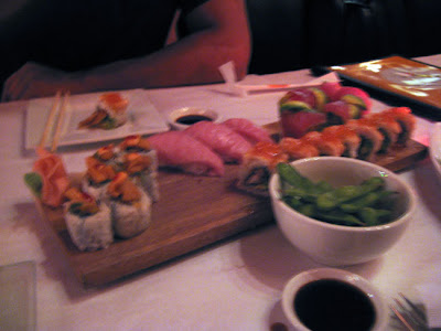 We also got to eat out at Butterfly 1156 W. Grand Ave. a Thai and Shushi joint that could be smack on Bedford Ave. Williamsburg giving Planet Thai a run for it's money. With a Euro-disco soundtrack and hip decor, this BYOB establishment delivered generously portioned rolls and some of the biggest hunks of fresh toro that melted right off the rice.